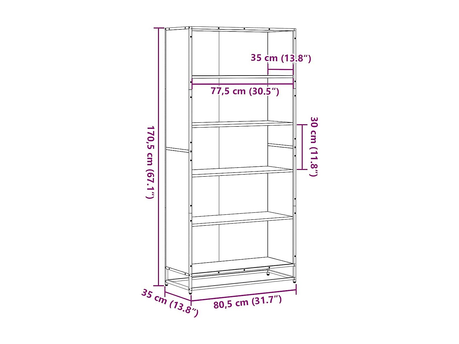 Estantería madera de ingeniería marrón roble 80,5x35x170,5 cm