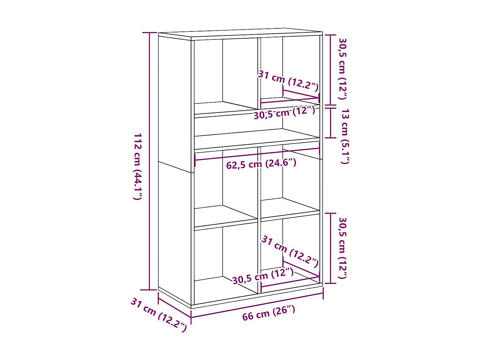 Librería divisora madera ingeniería gris hormigón 92x29x112 cm