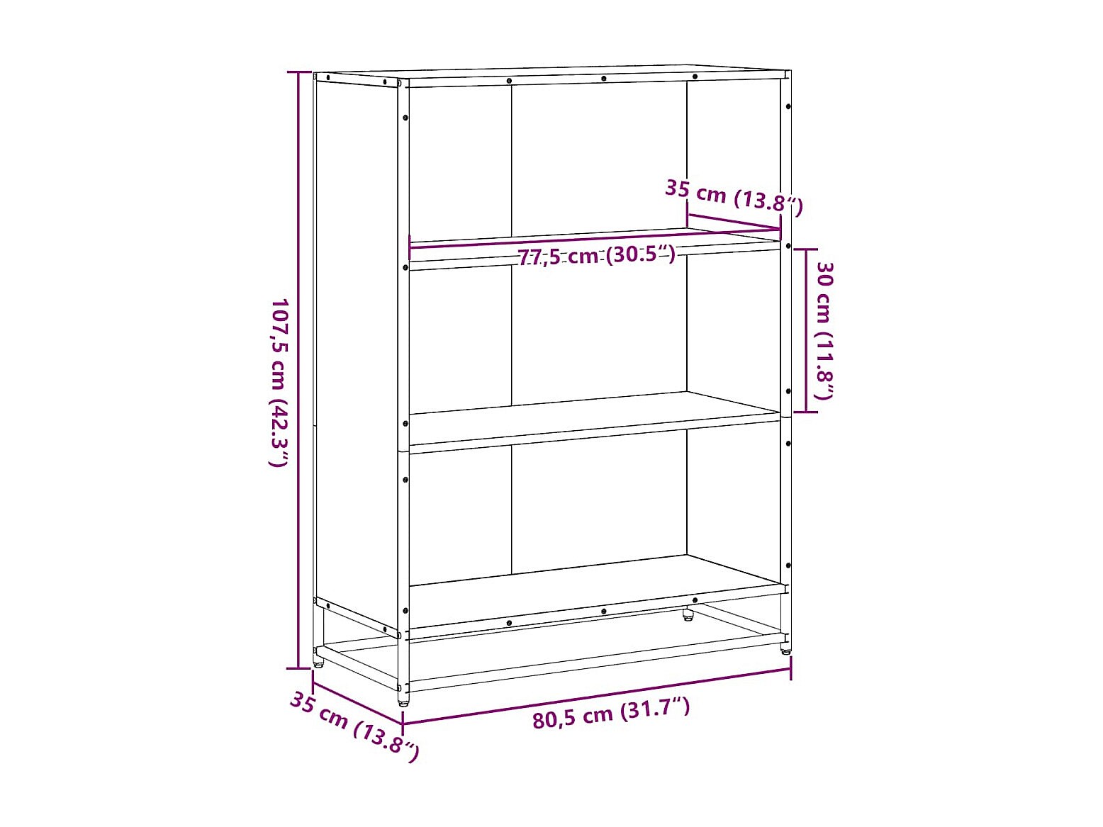 Estantería madera ingeniería negra 80,5x35x107,5 cm