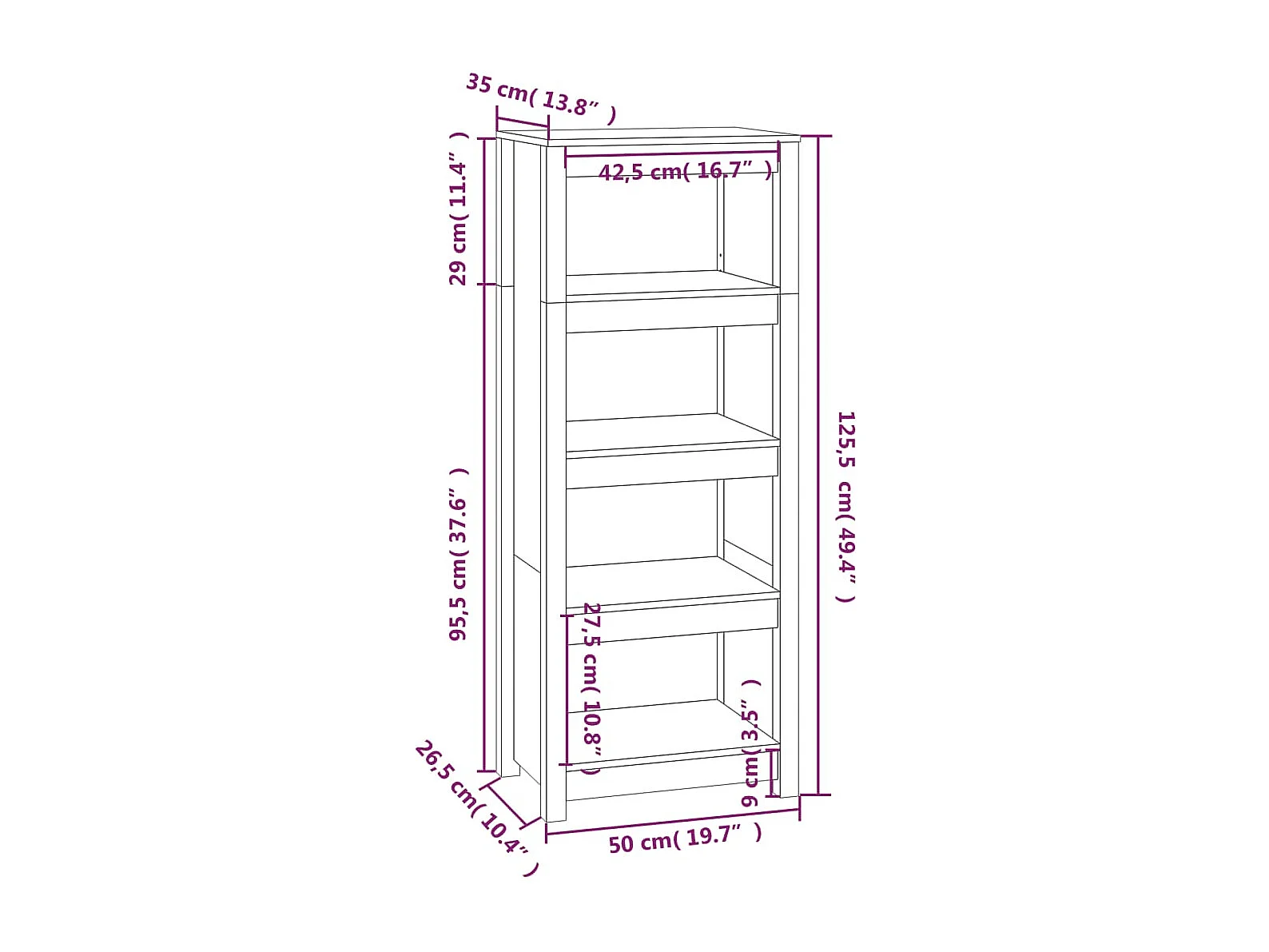 Estantería madera maciza de pino blanca 50 x 35 x 125,5 cm