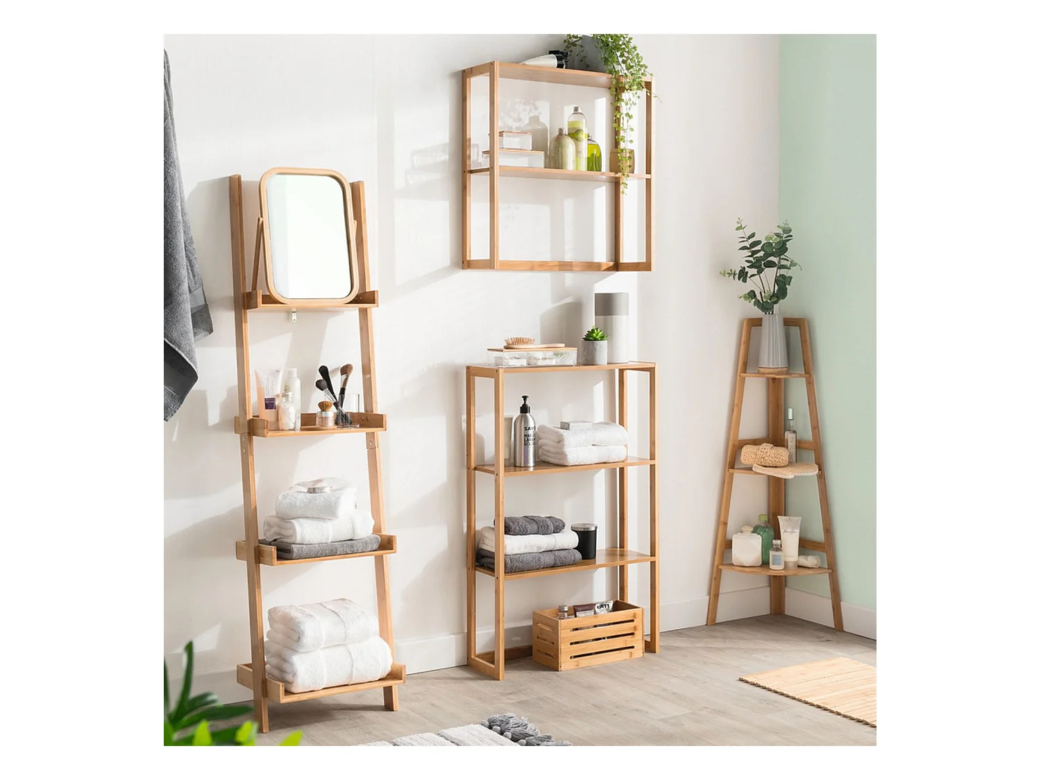Estantería Esquinera de Bambú con 3 Niveles 80x36.6x33.5cm 7house