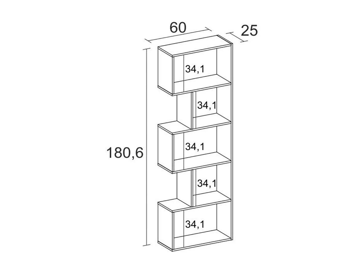 Estantería Neón 5 niveles diseño asimétrico blanco 180,6x60x25 cm