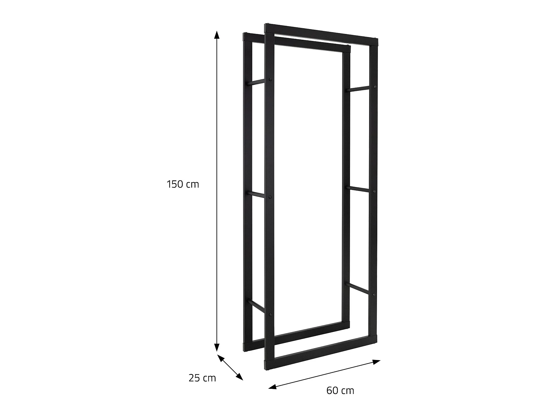 Estanteria para leña de interior leñero organizador metálico negro 60x150x25 cm