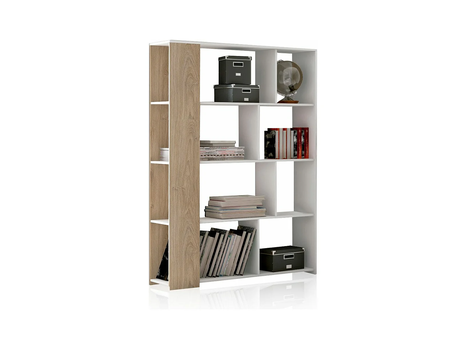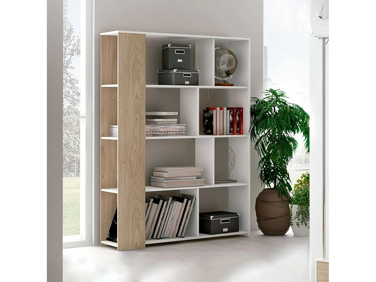 Estante para libros Dtavca, Estante de oficina, Porta libros móvil, Biblioteca, 80x34 h205 cm, Roble y Blanco