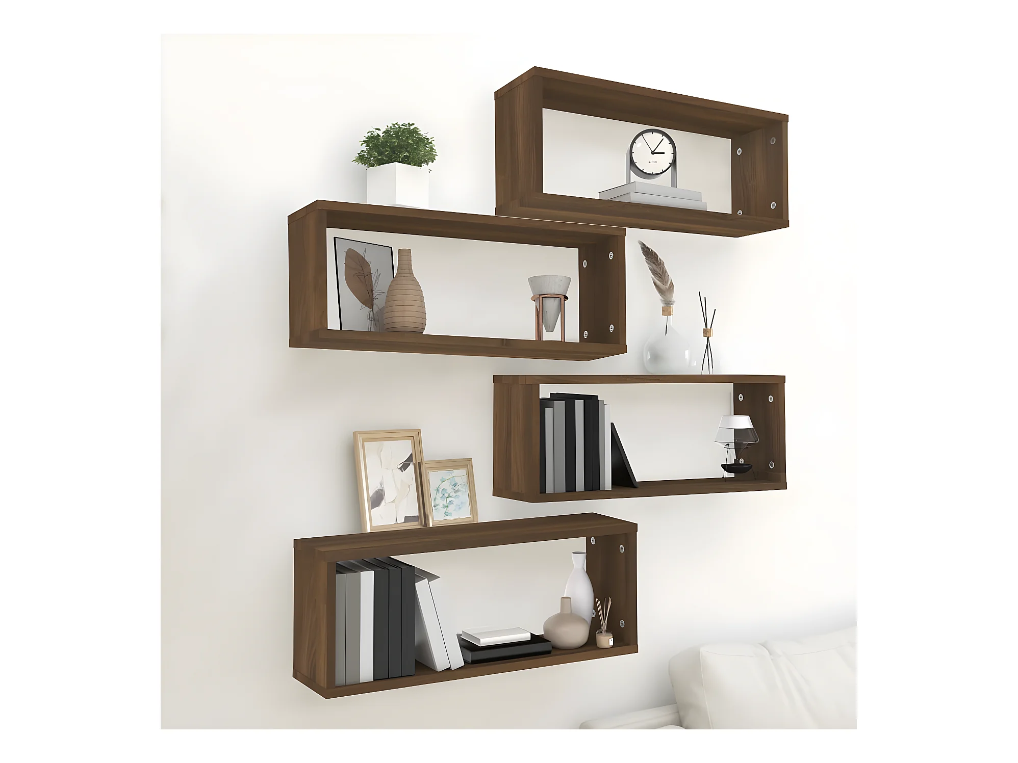 Estantes cúbicos de pared 4 uds madera roble marrón 60x15x23 cm ES919406