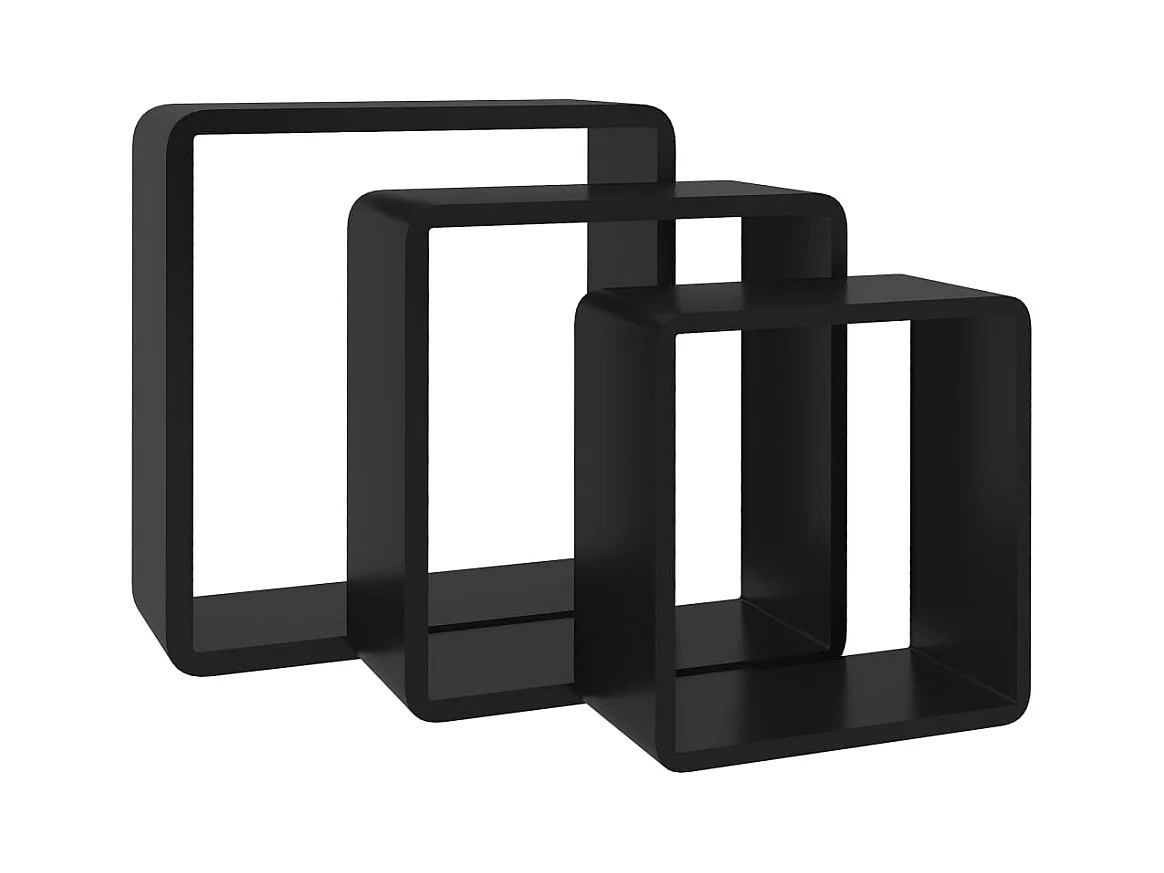Estantes cubo de pared 3 unidades MDF negro ES341402