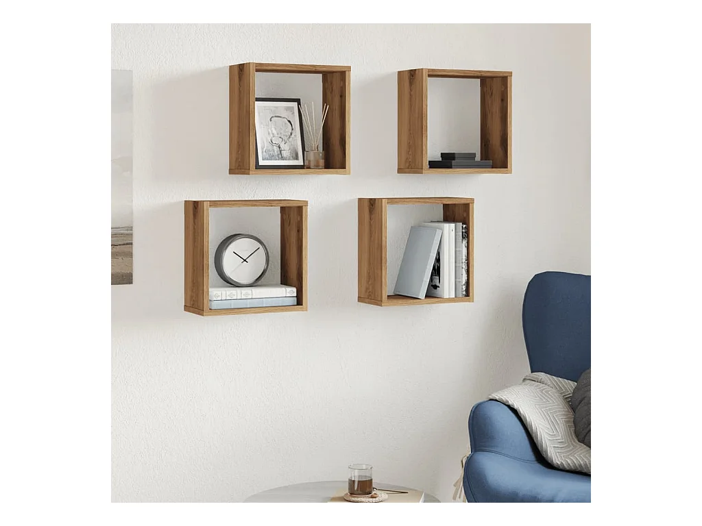 Estantes cubo de pared 4 uds madera roble artisan 30x15x30 cm