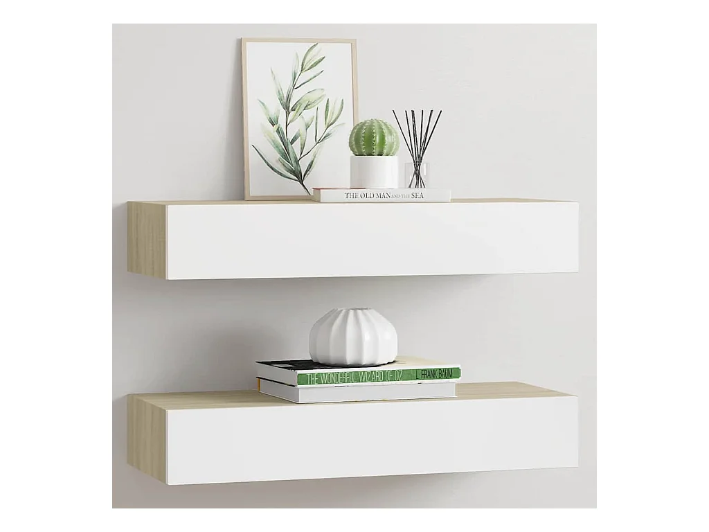 Estantes de cajón de pared 2 uds Roble y blanco 60x23,5x10cm MDF