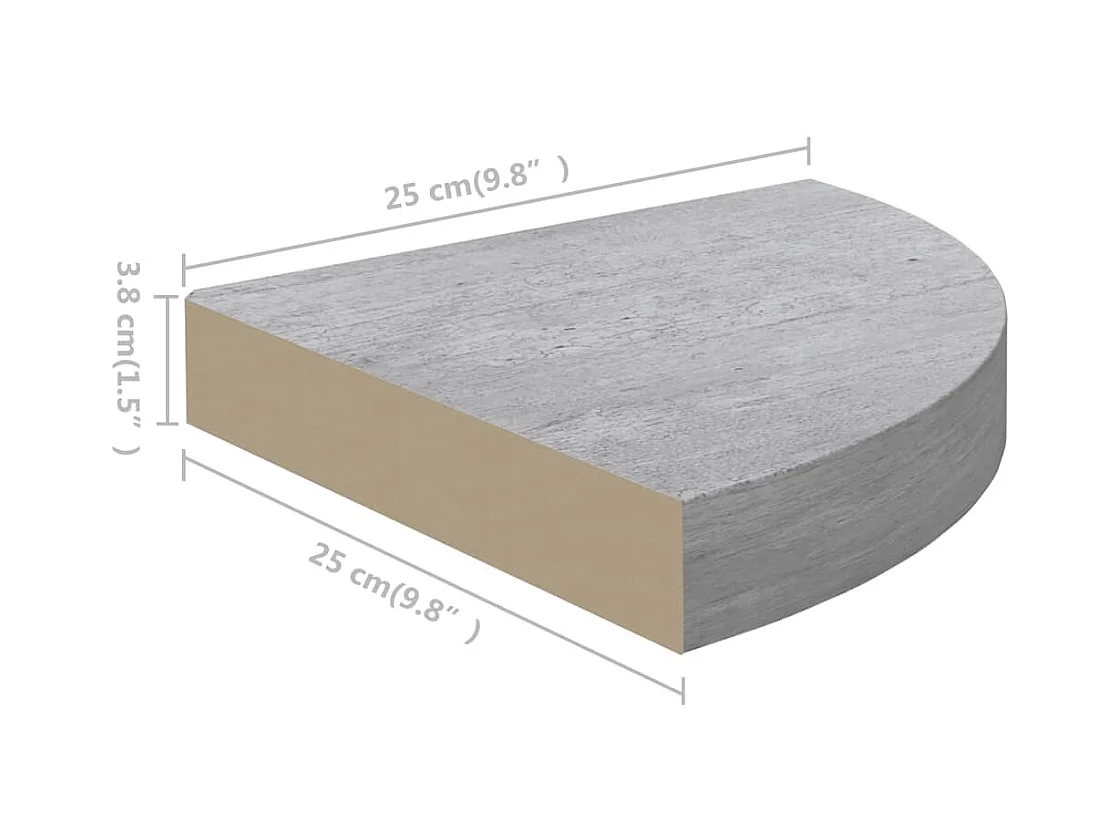 Estantería esquinera de pared de hormigón gris 25x25x3,8 cm MDF