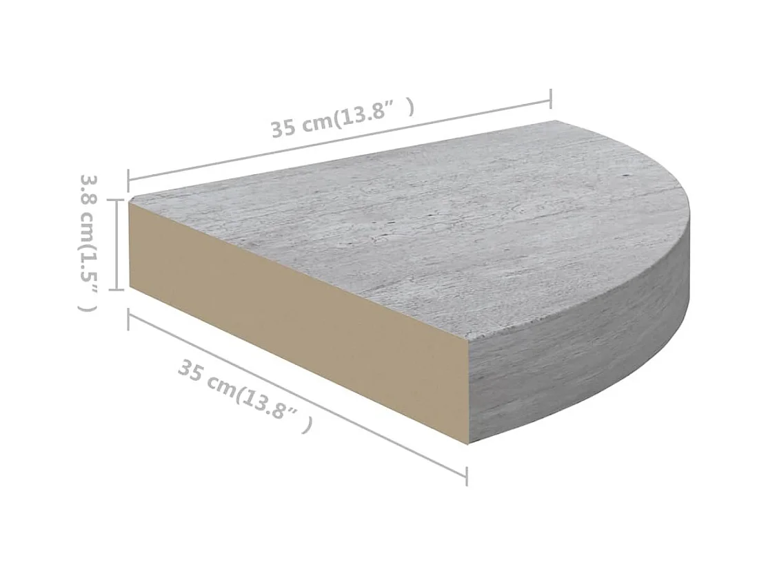 Estantería esquinera de pared de hormigón gris 35x35x3,8 cm MDF