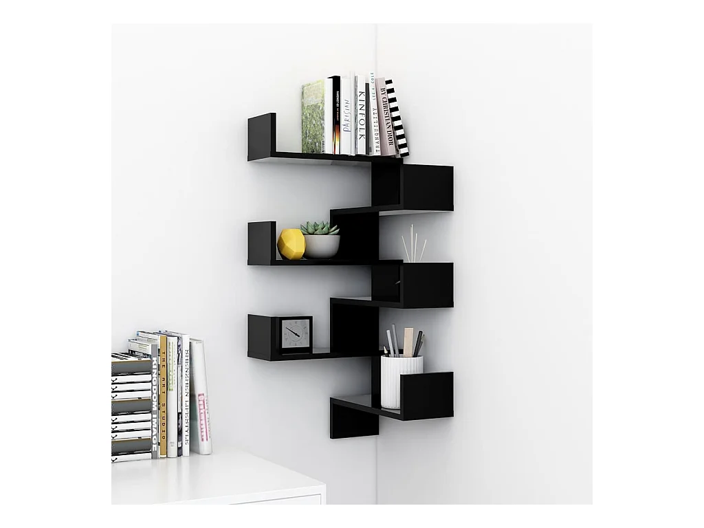 Estantes de esquina pared madera ingeniería negro 40x40x50 cm ES34034