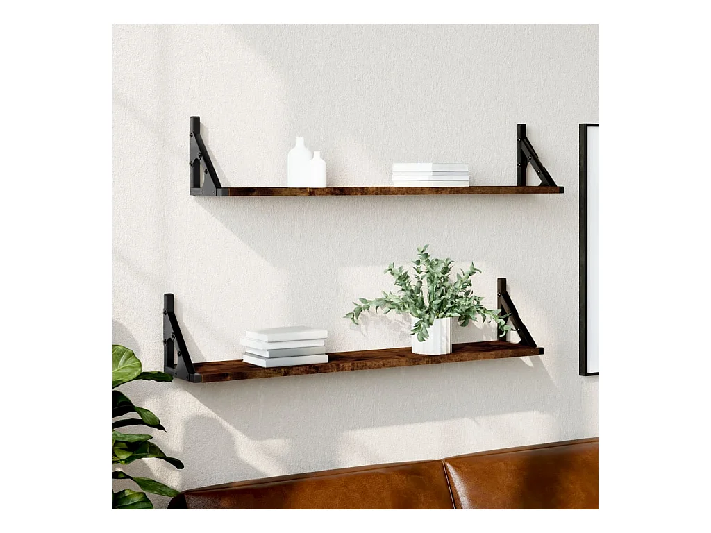 Estantes de pared 2 piezas roble ahumado 80x15x15,5cm madera de ingeniería
