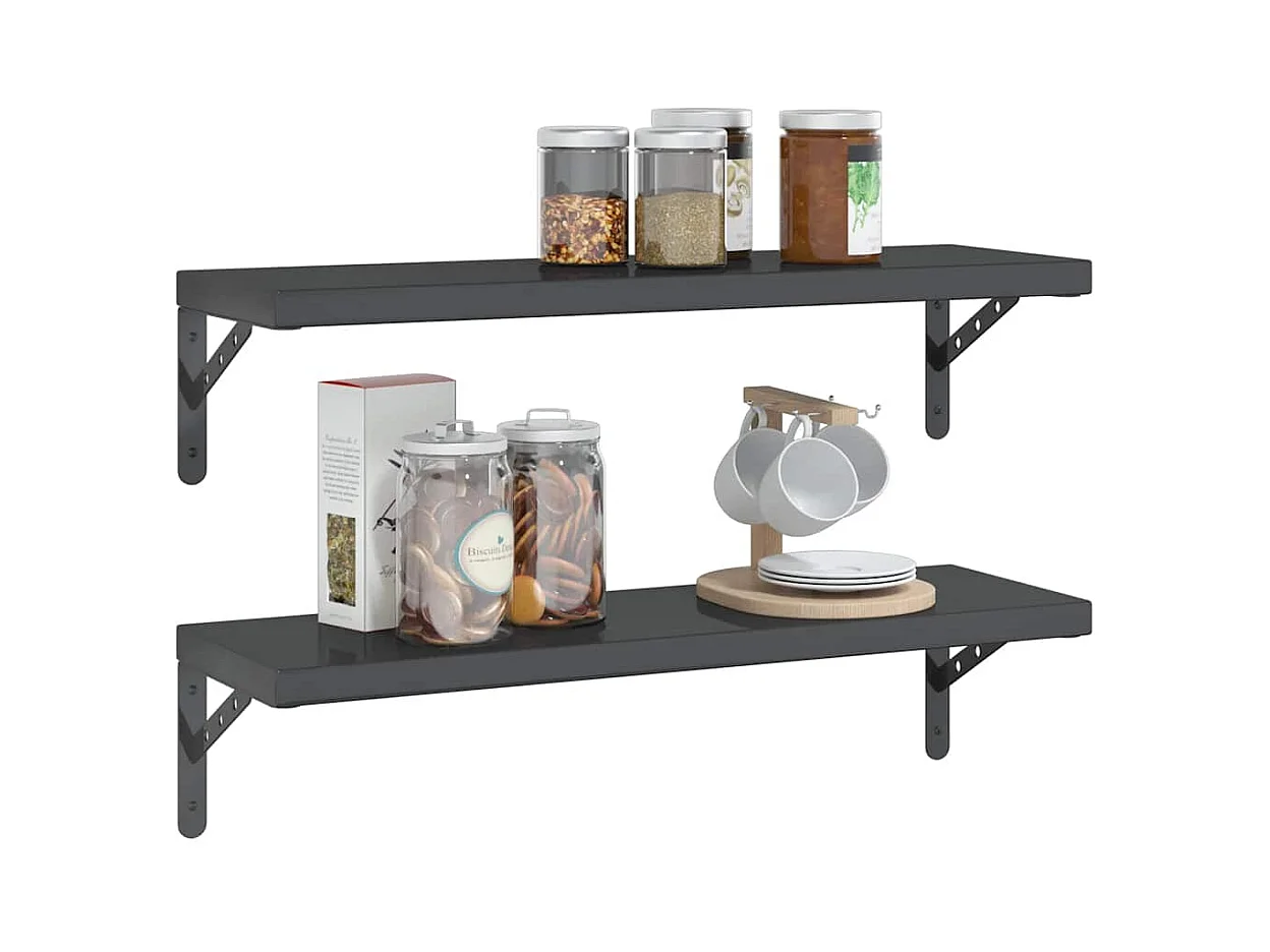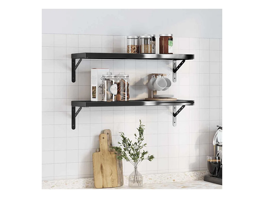 Estantes de pared 2 uds acero inoxidable negro 75x23,5x3 cm