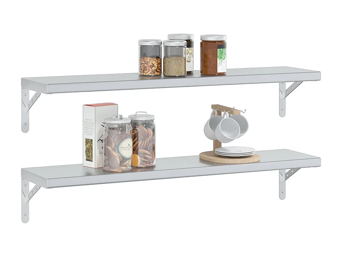 Estantes de pared 2 uds acero inoxidable plateado 100x23,5 cm