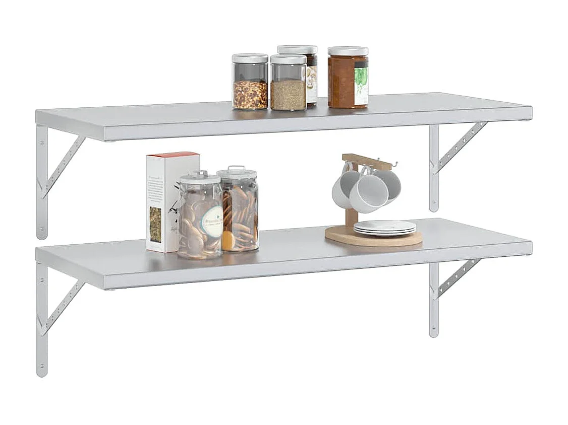 Estantes de pared 2 uds acero inoxidable plateado 75x40x3 cm