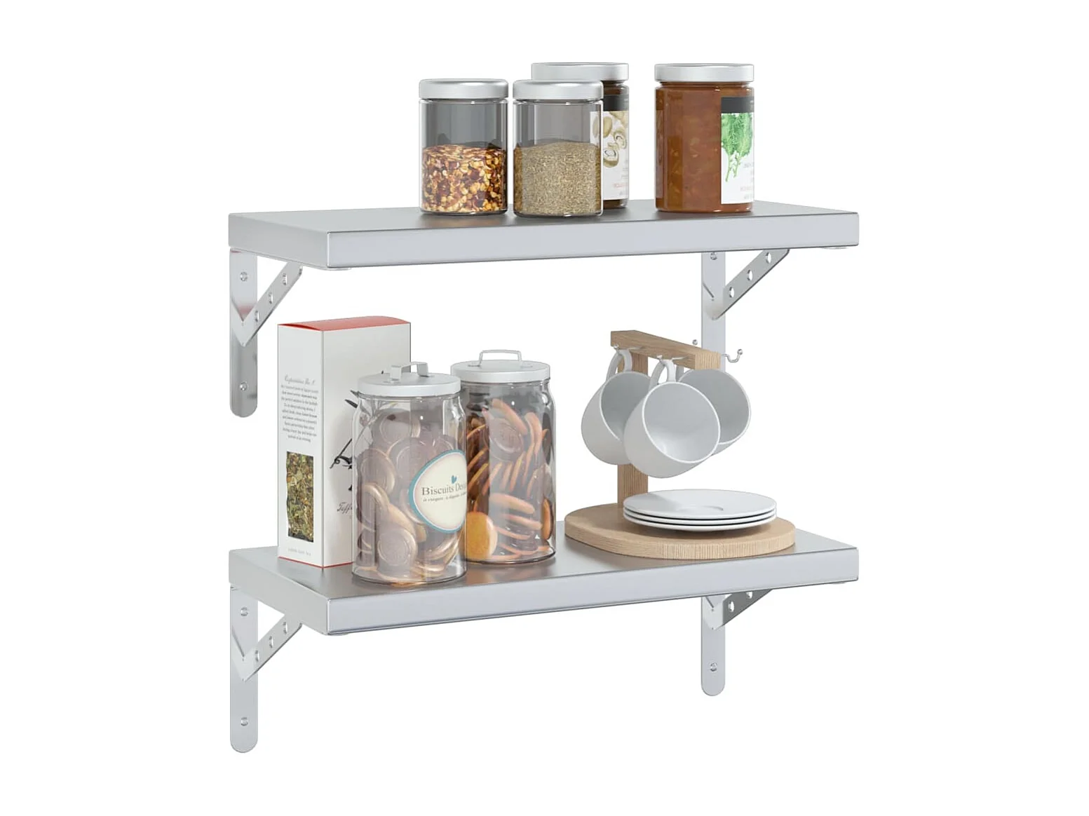 Estantes de pared 2 uds acero inoxidable plateado 50x23,5 cm