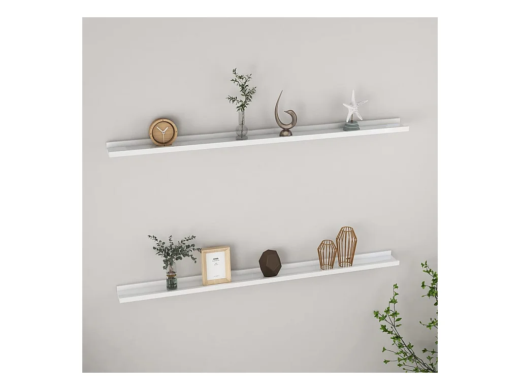 Estantes de pared 2 uds Blanco brillo 100x9x3 cm