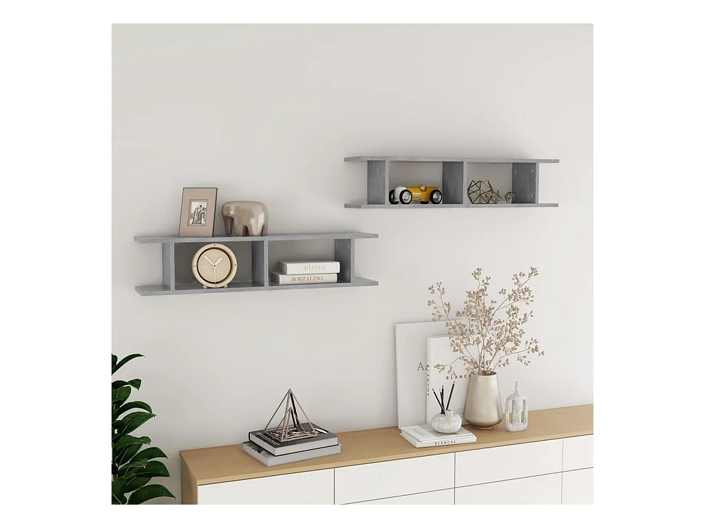 Estantes pared 2 uds madera ingeniería gris hormigón 58x18x18cm