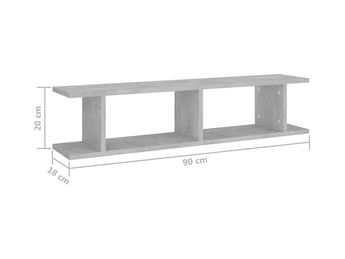 Estantes de pared 2 uds contrachapado gris hormigón 90x18x20 cm