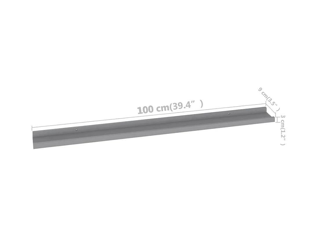 Estantes de pared 2 uds Gris 100x9x3 cm