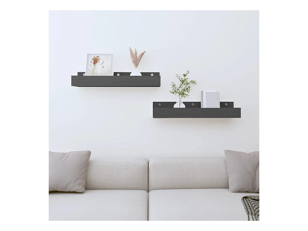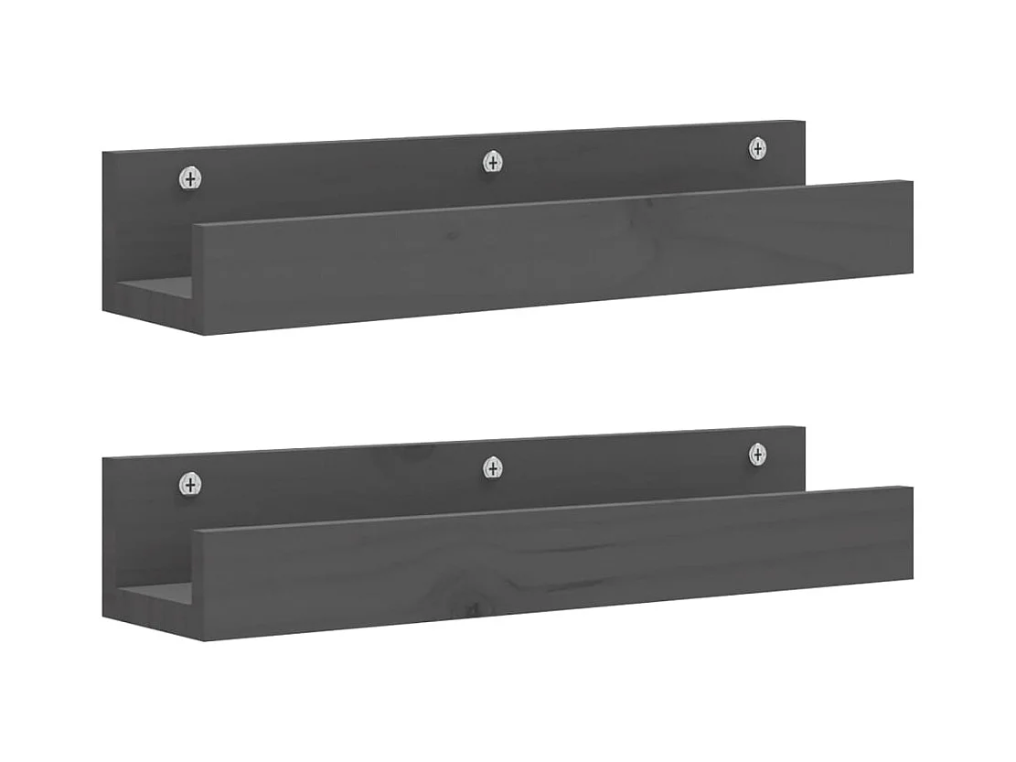 Estantes de pared 2 uds Gris 50x12x9 cm Madera maciza de pino