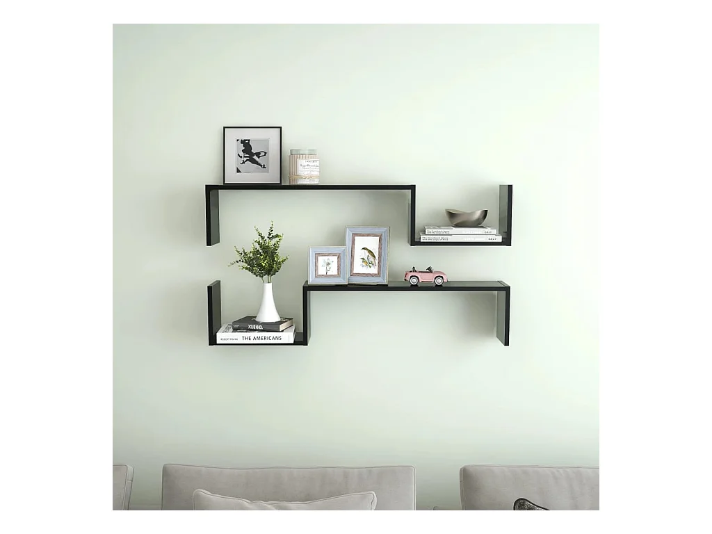 Estantes de pared 2 unidades negro 100x9x3 cm ES17302