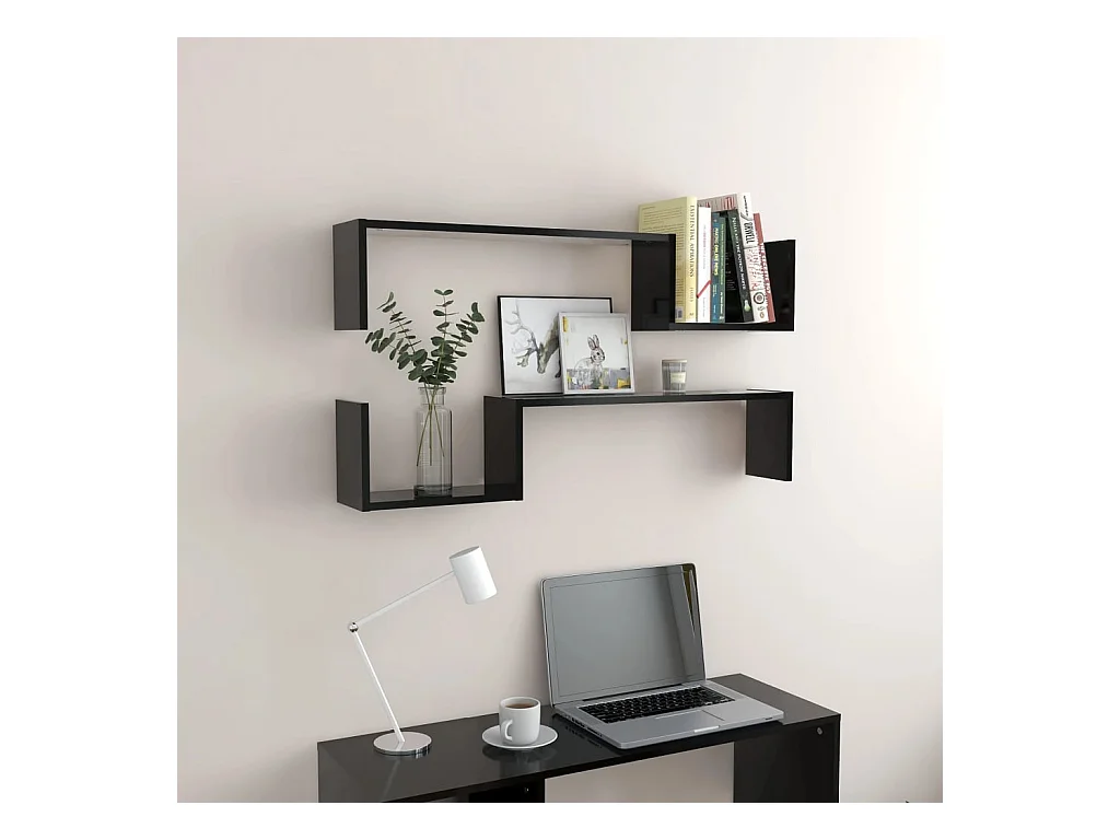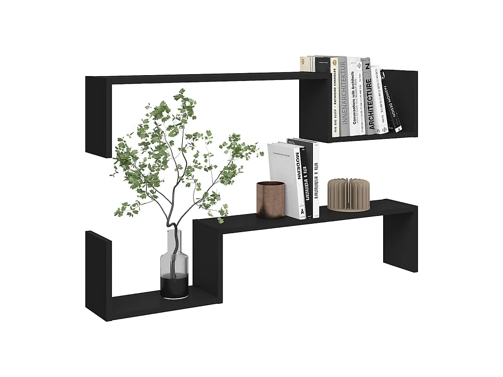 Estante cubo de pared 2 uds contrachapado negro 60x15x23 cm ES75129