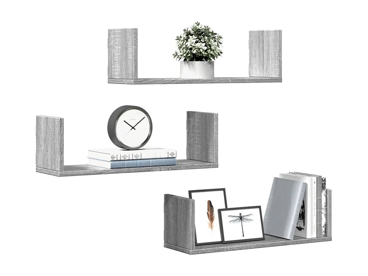 Estantes de pared 3 piezas gris sonoma 80x18x18 cm madera de ingeniería