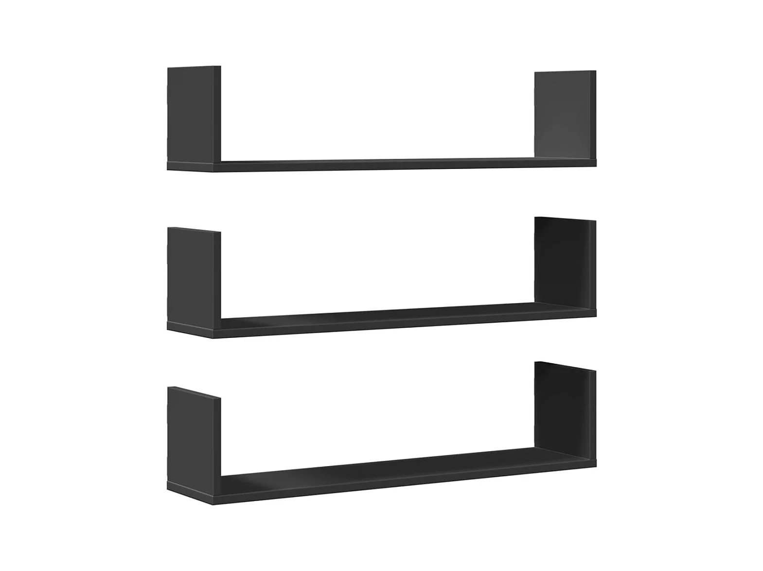 Estantes de pared 3 uds madera de ingeniería negro 80x18x18 cm