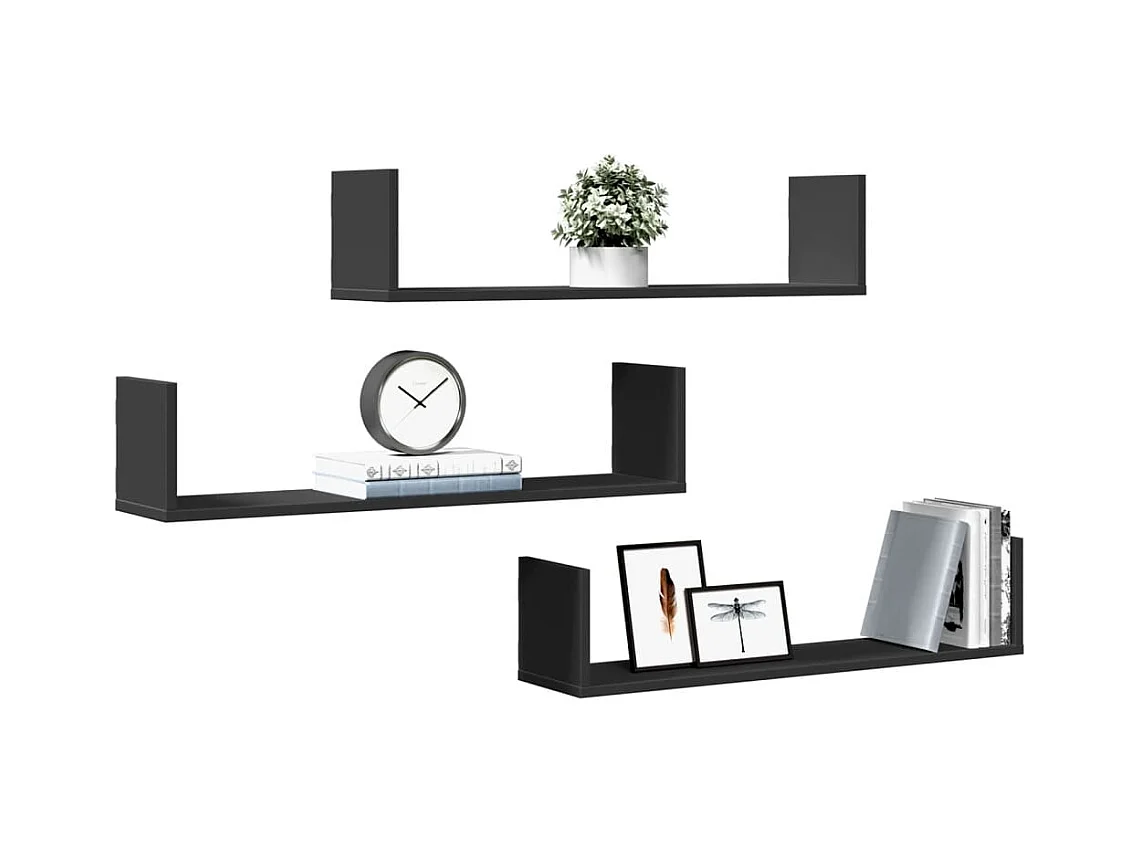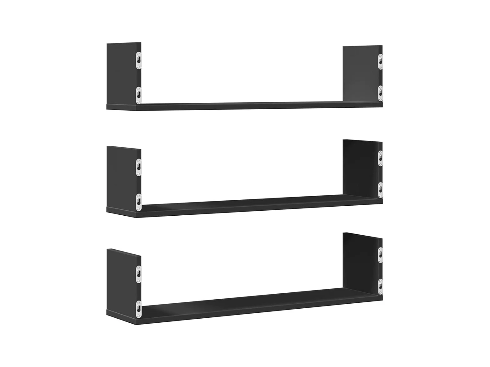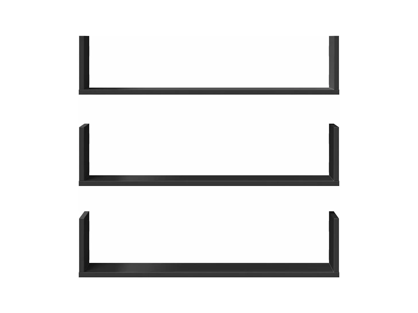 Estantes de pared 3 uds madera de ingeniería negro 58x18x18 cm