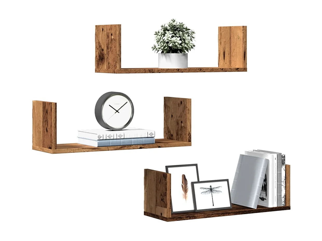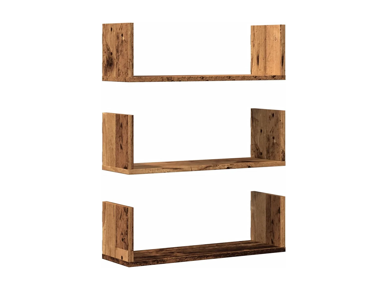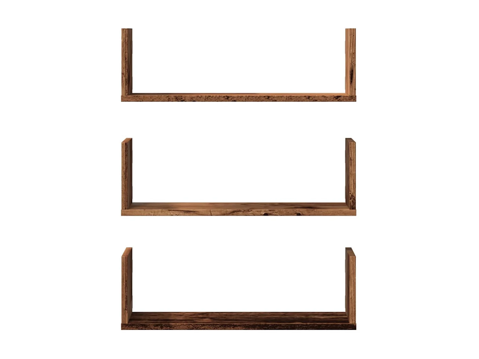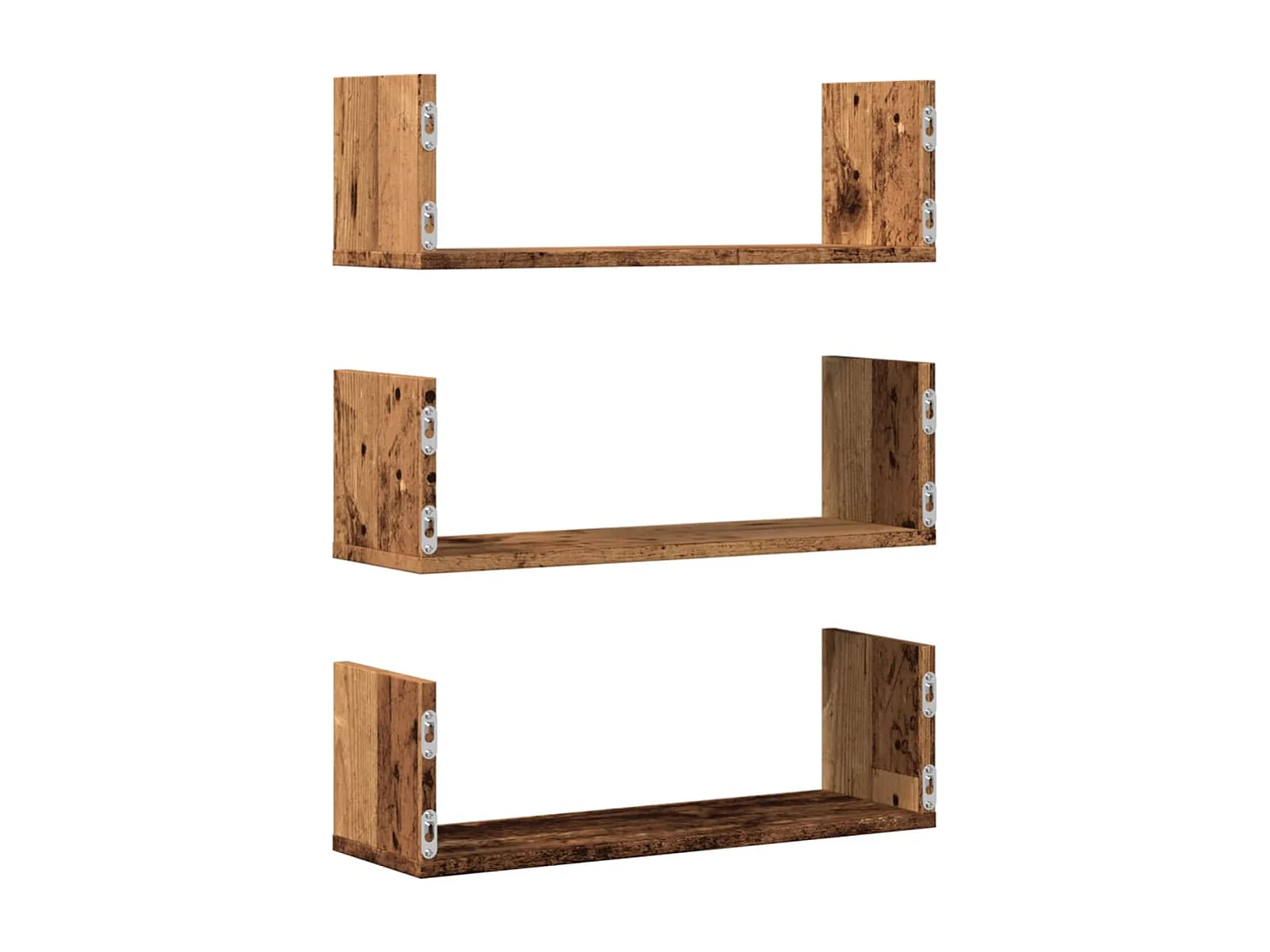 Estantes de pared 3 uds madera ingeniería envejecida 58x18x18cm