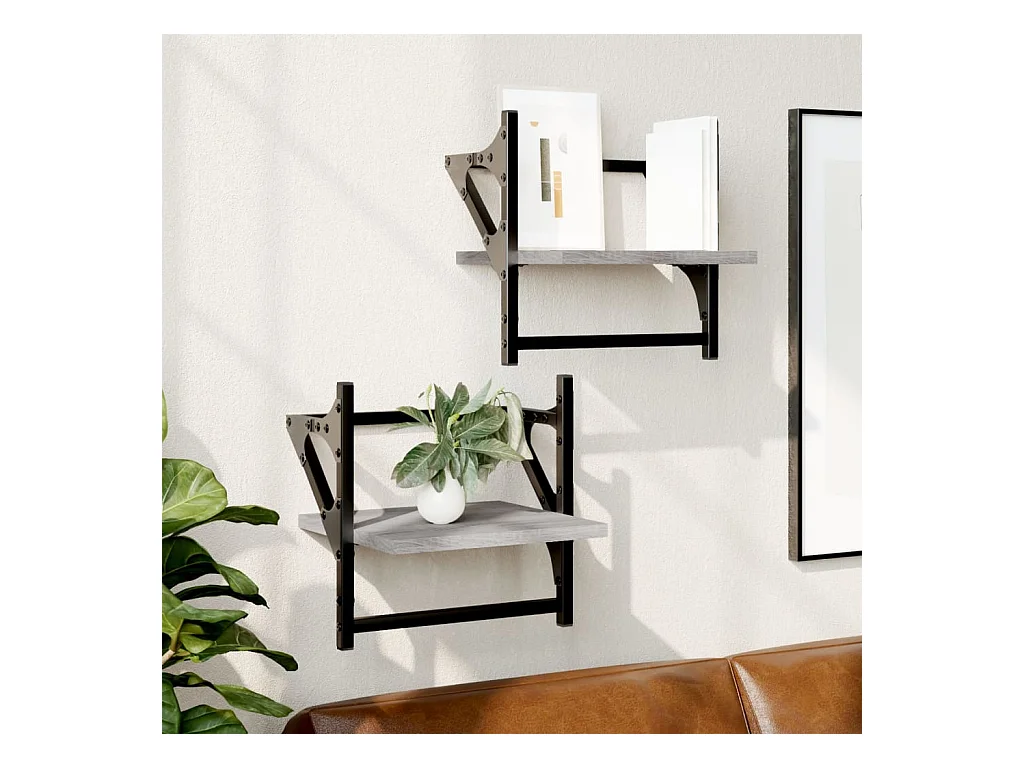 Estantes de pared de 3 niveles con barras, 2 unidades, color gris Sonoma