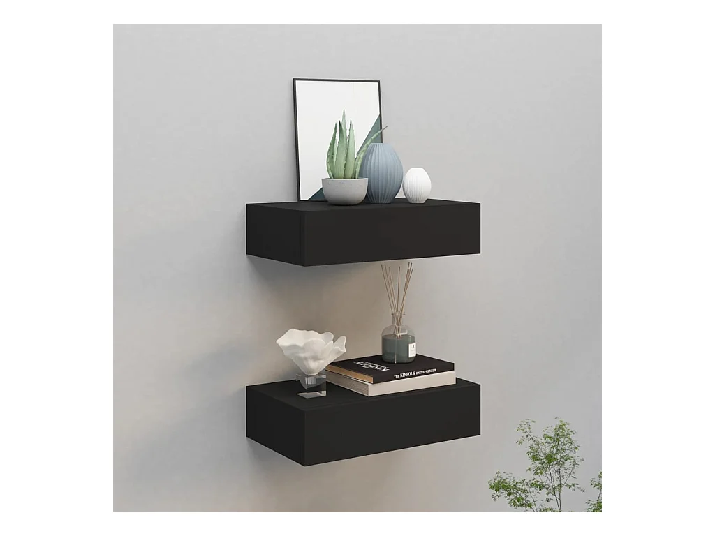 Estantes de pared con cajón 2 uds MDF negro 40x23,5x10 cm ES81236
