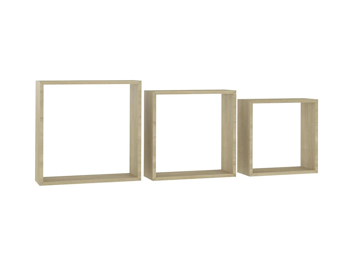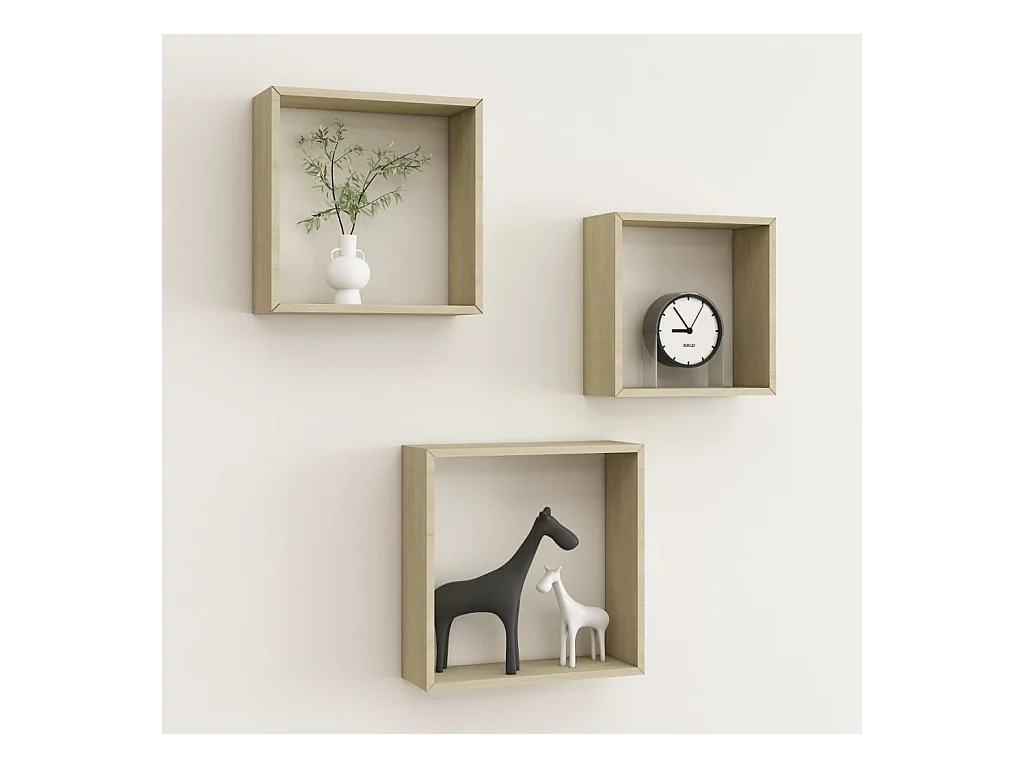 Estantes de pared cúbicos de 3 piezas, roble Sonoma
