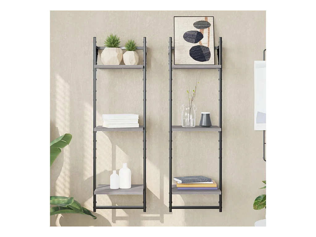 Estantes de pared de 3 niveles con barras, 2 unidades, color gris Sonoma