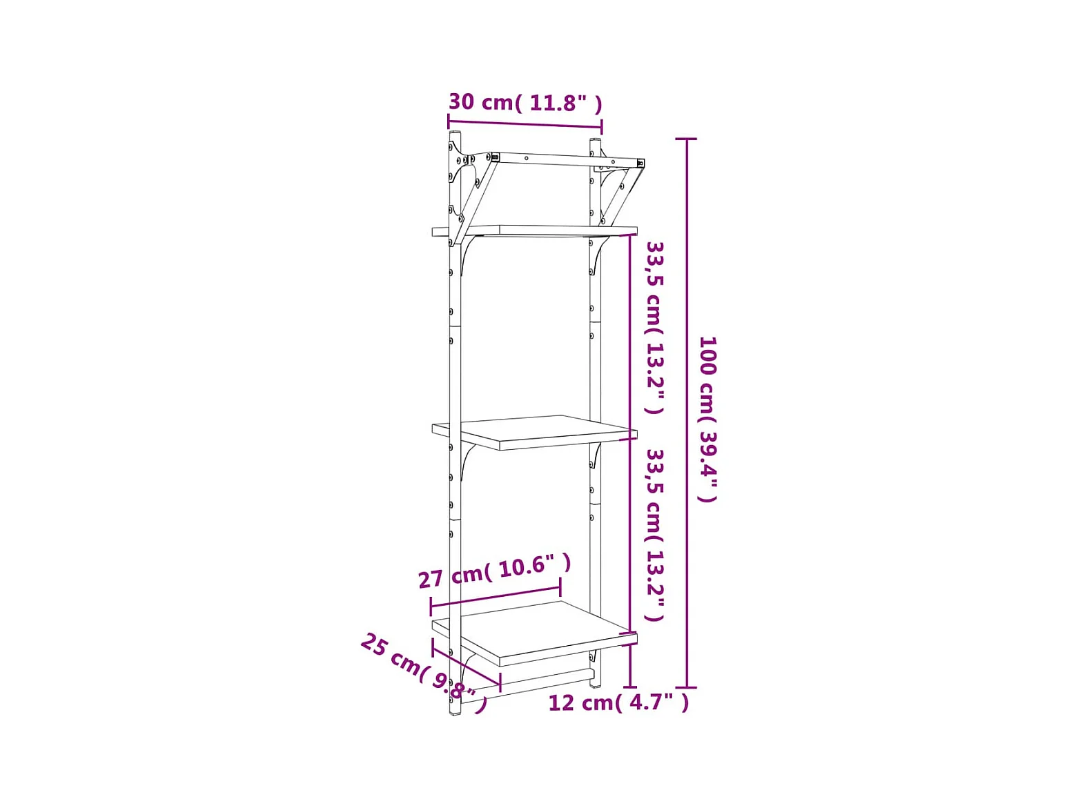 Estantería de pared de 3 niveles Sonoma gris 30x25x100 cm