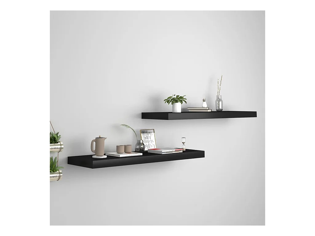 Estante de pared de pared 2 uds MDF negro brillo 80x23,5x3,8 cm ES69281
