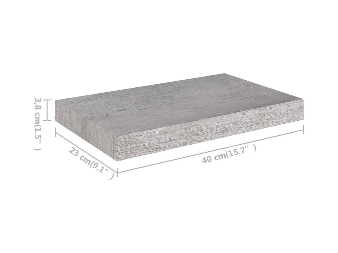Estantería flotante de pared gris hormigón 40x23x3,8 cm MDF