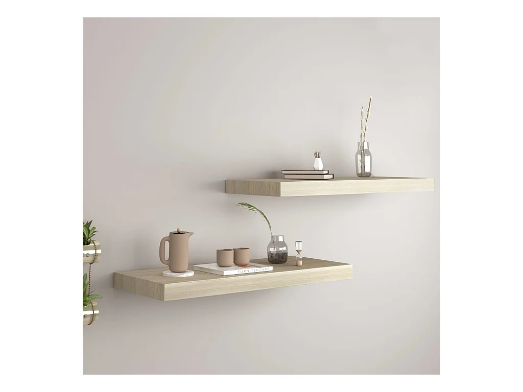 Estantes de pared flotantes 2 piezas roble 60x23,5x3,8 cm MDF
