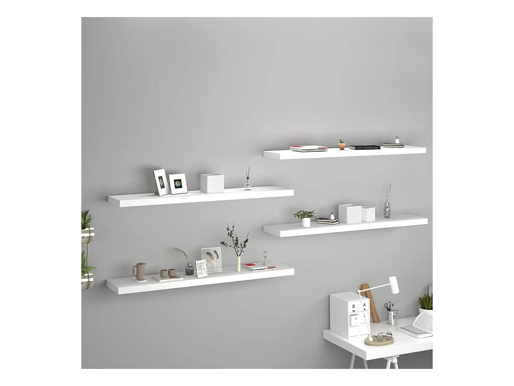 Estante flotante de pared 4 piezas blanco brillante 80x23,5x3,8cm MDF