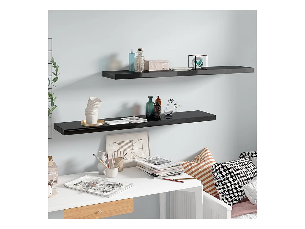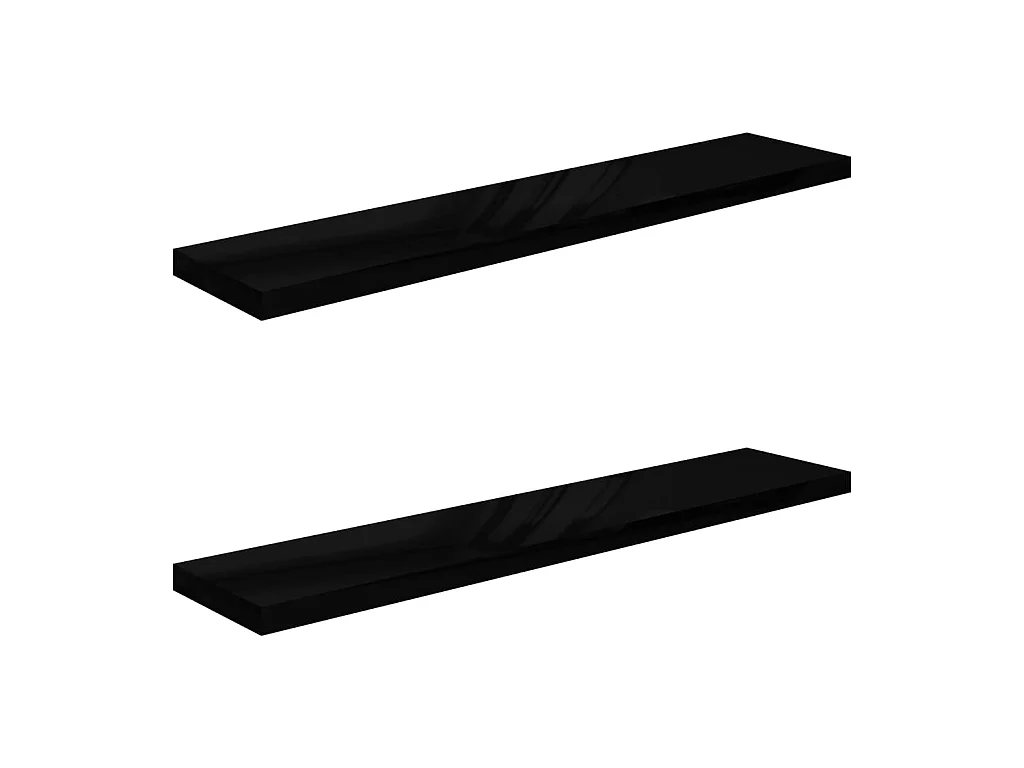 Estantes de pared pared 2 uds MDF negro brillo 120x23,5x3,8 cm ES25767