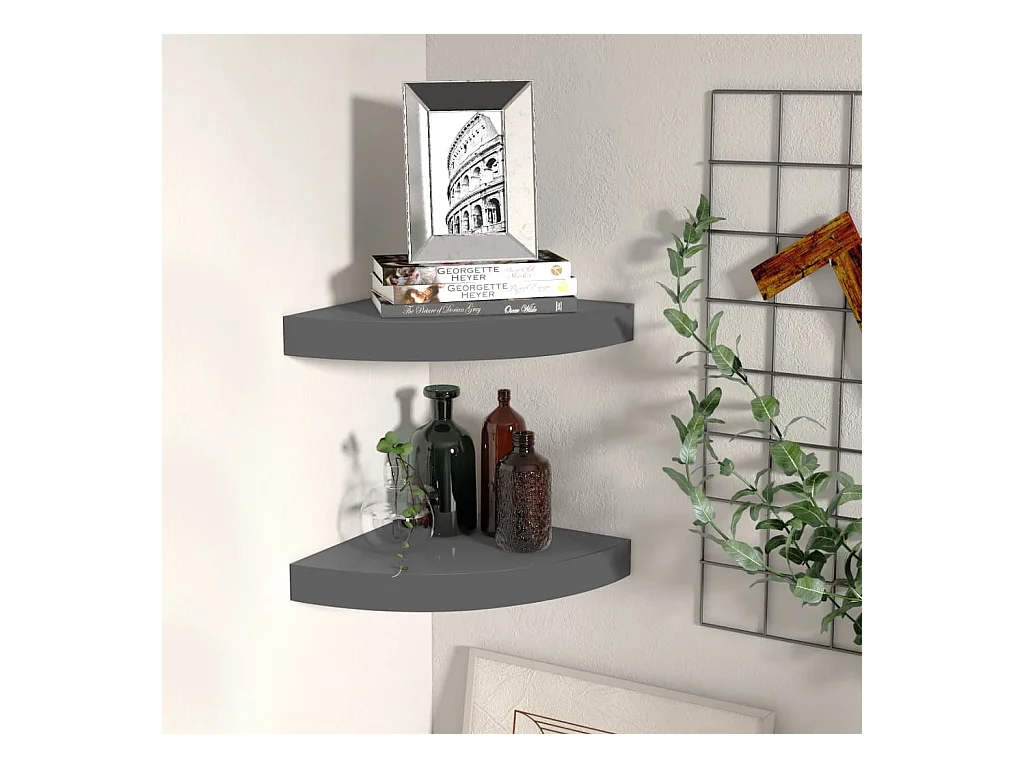 Estantes flotantes de esquina 2 piezas Gris 25x25x3,8 cm MDF