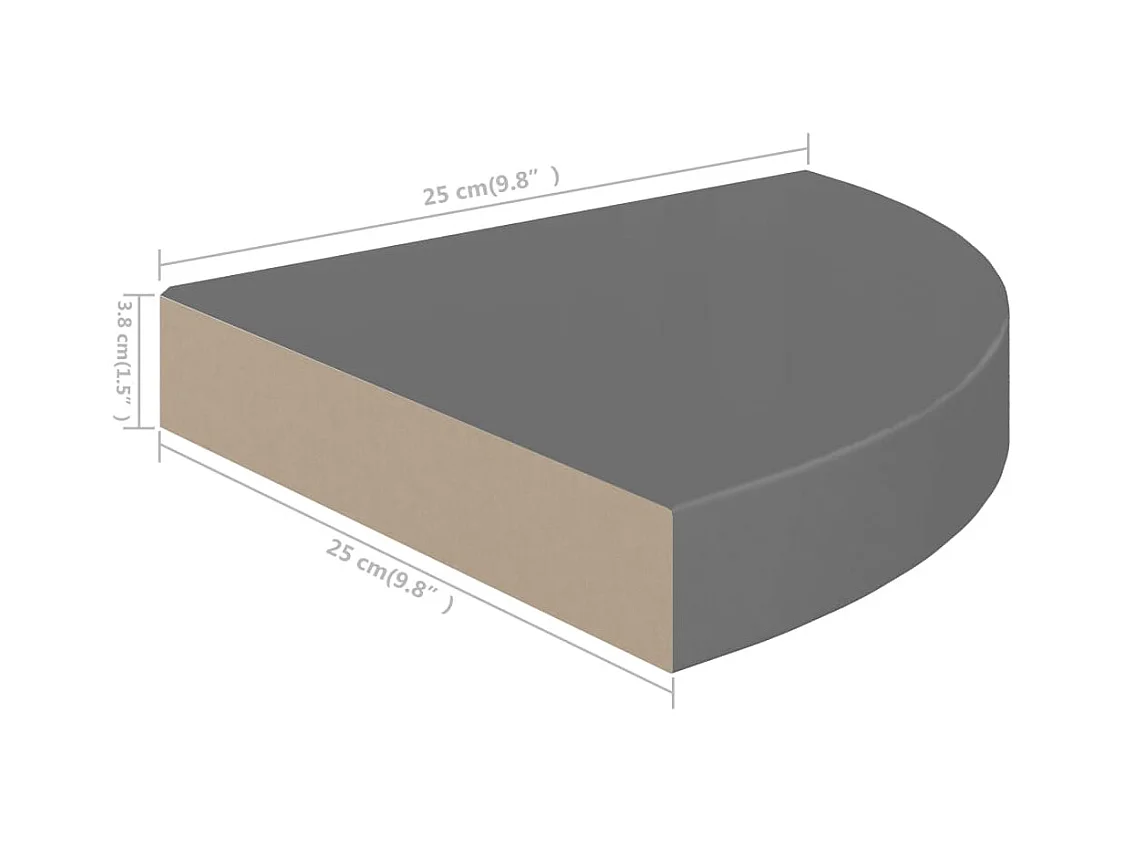 Estante flotante de esquina gris brillante 25x25x3,8 cm MDF