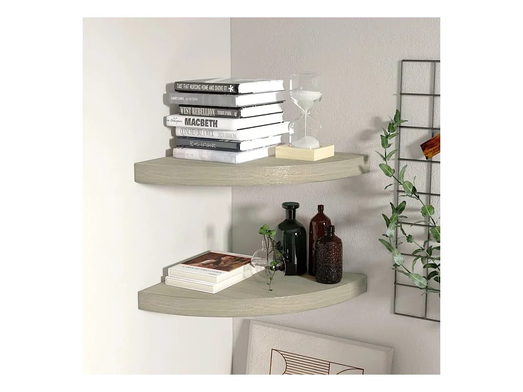 Estantería esquinera de pared de roble y blanco 35x35x3,8 cm MDF