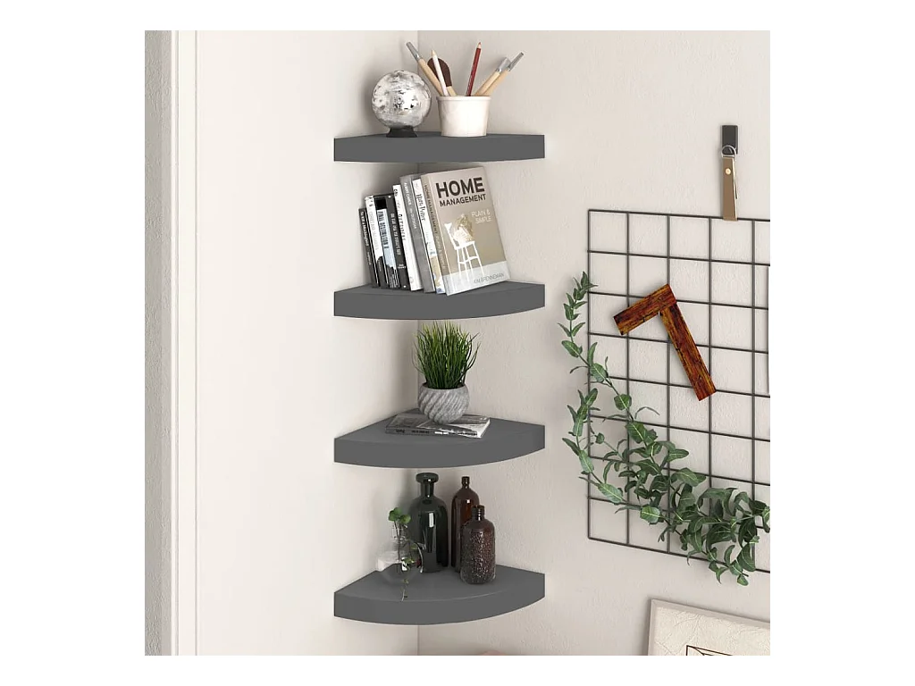 Estantes flotantes de esquina 4 piezas Gris 25x25x3,8 cm MDF