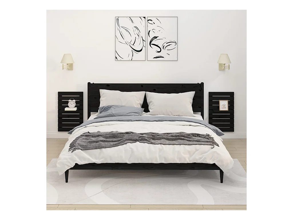 Estantes mesitas de pared 2 uds madera maciza de pino negro