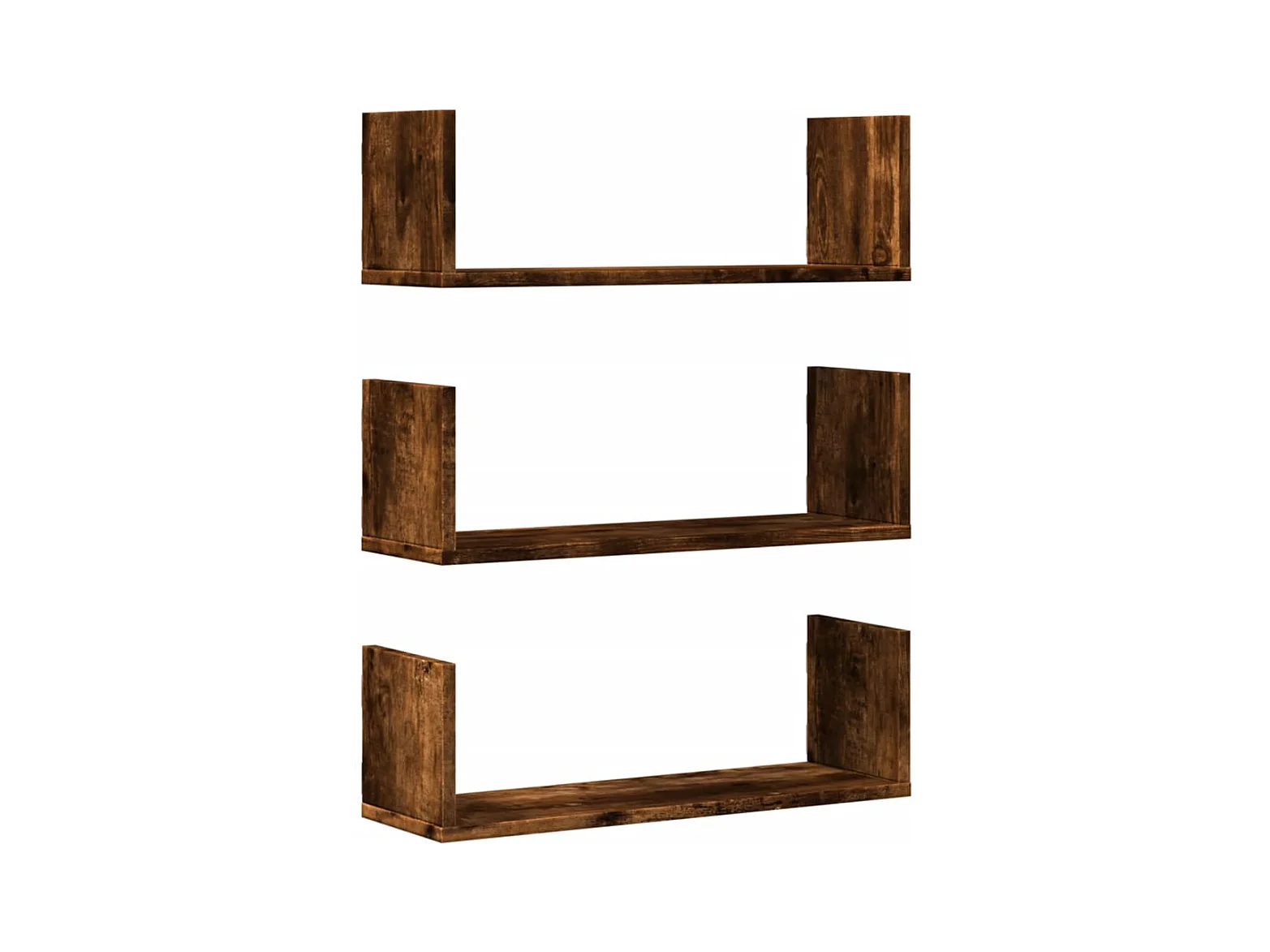 Estantes pared 3 uds madera ingeniería roble ahumado 80x18x18cm