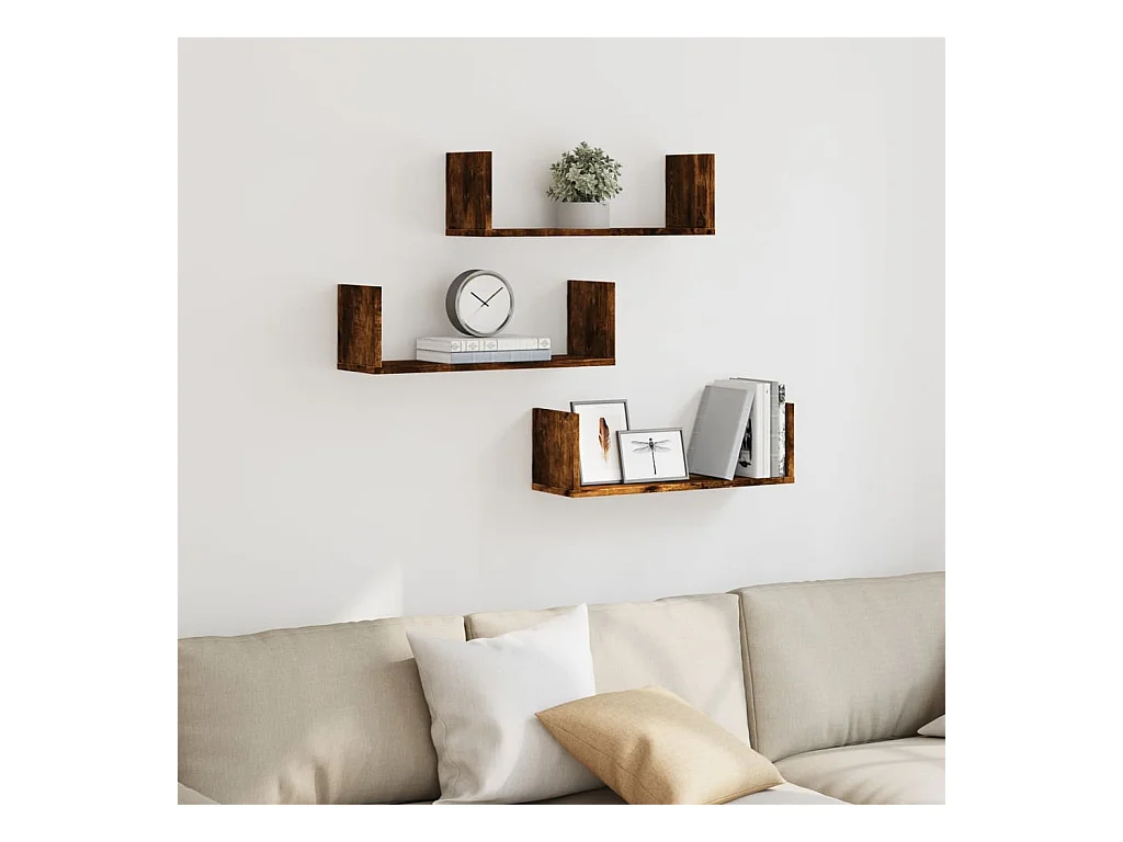 Estantes pared 3 uds madera ingeniería roble ahumado 58x18x18cm
