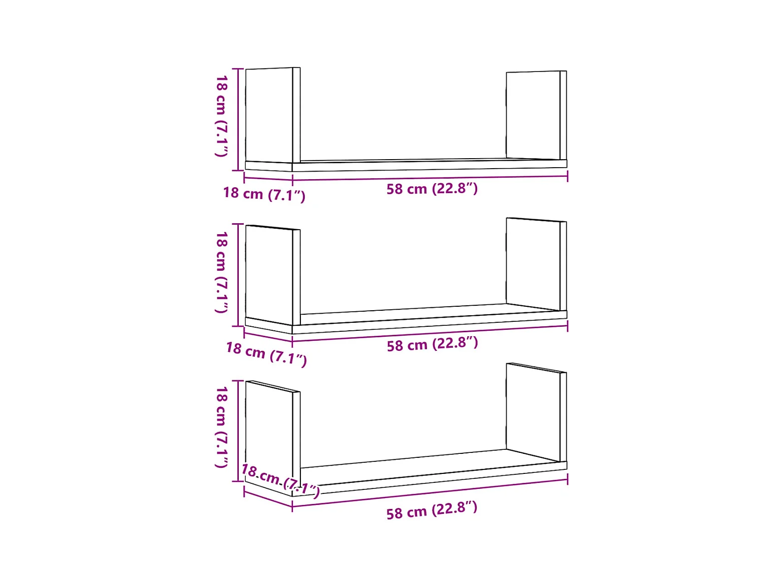 Estantes de pared 3 uds madera ingeniería artisian 58x18x18 cm