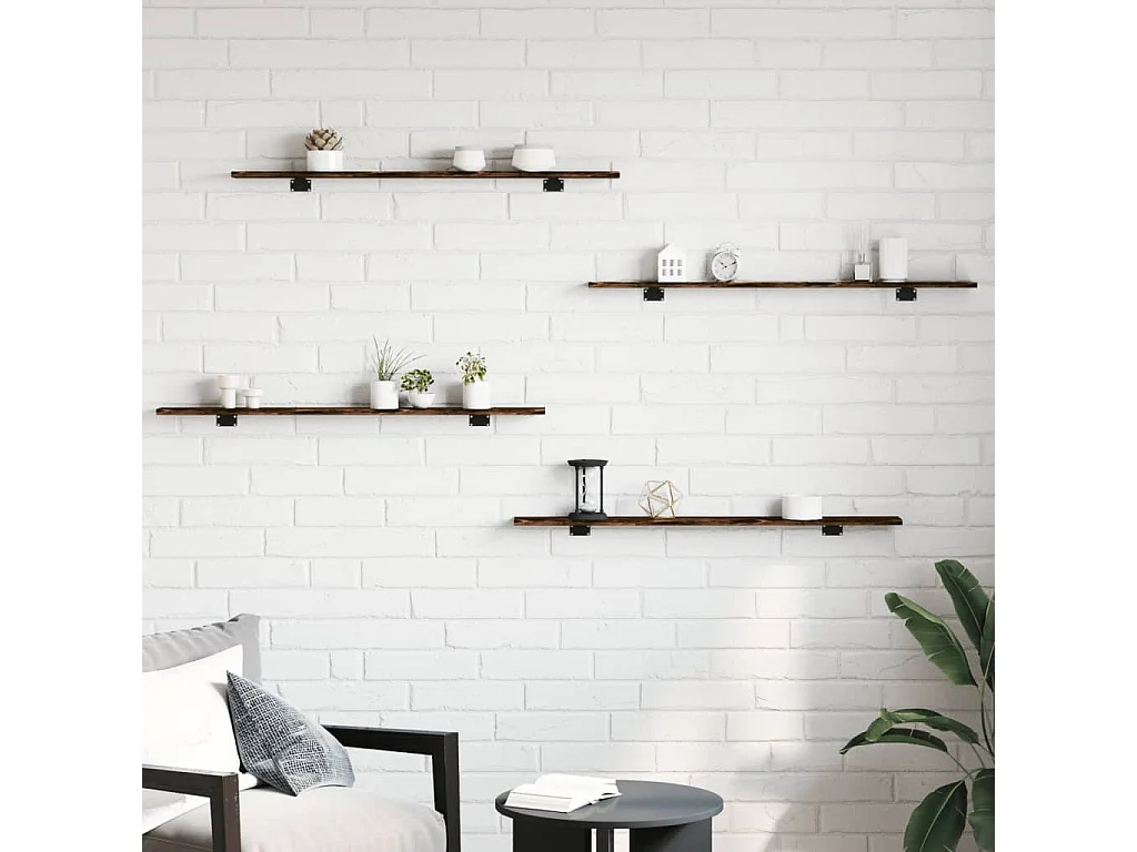 Estantes pared 4 uds madera ingeniería roble humo 60x10x1,5 cm